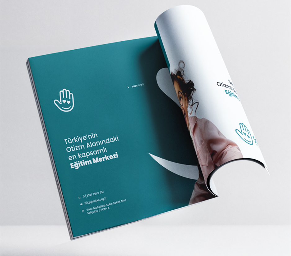 📘 Katalog tasarımında ise SOBE’nin hikâyesini sayfalara taşıdık. Eğitimden terapiye, sosyal etkinliklerden gönüllü çalışmalarına kadar her başlıkta kurumun vizyonunu ve dokunduğu hayatları anlattık. Görsel dilde sadelik, metinlerde samimiyet ön plandaydı.